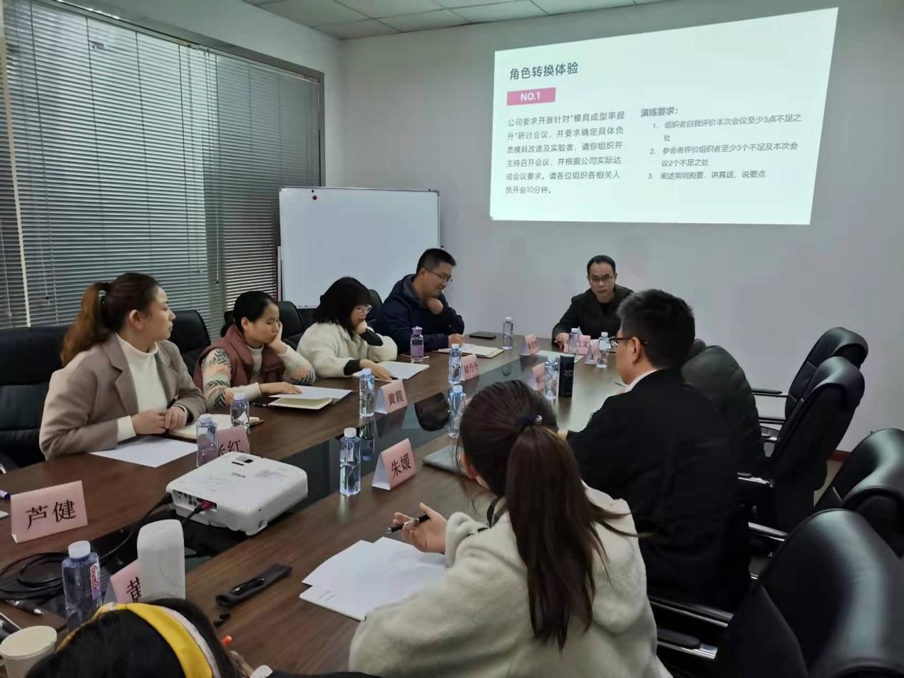 本次培训的第一天,荣畅启迪教育科技储桂荣老师通过对行业发展、企业战略与实际现状对英诺华管理人员进行了企业价值梳理、管理角色定位、管理思维塑造,帮助学员提升思想意识,并通过简单明了的案例来进行现场的实践辅导,让学员从实际行为来反思自身作为管理者的不足,并不断思考和推演,促动思维调整。